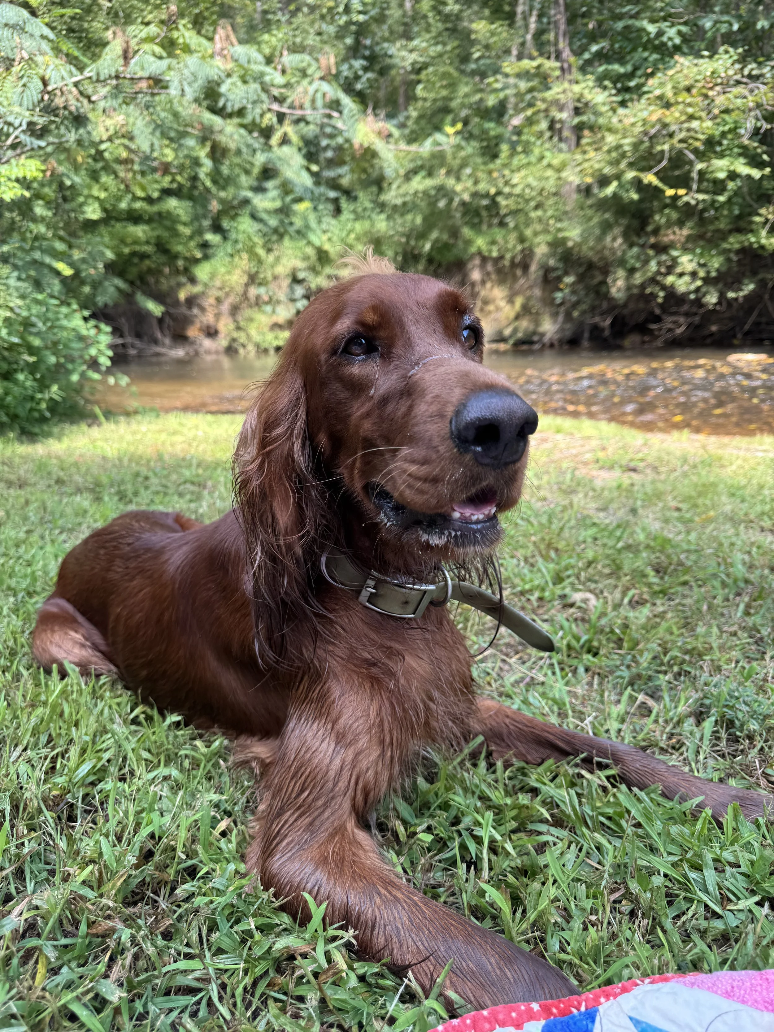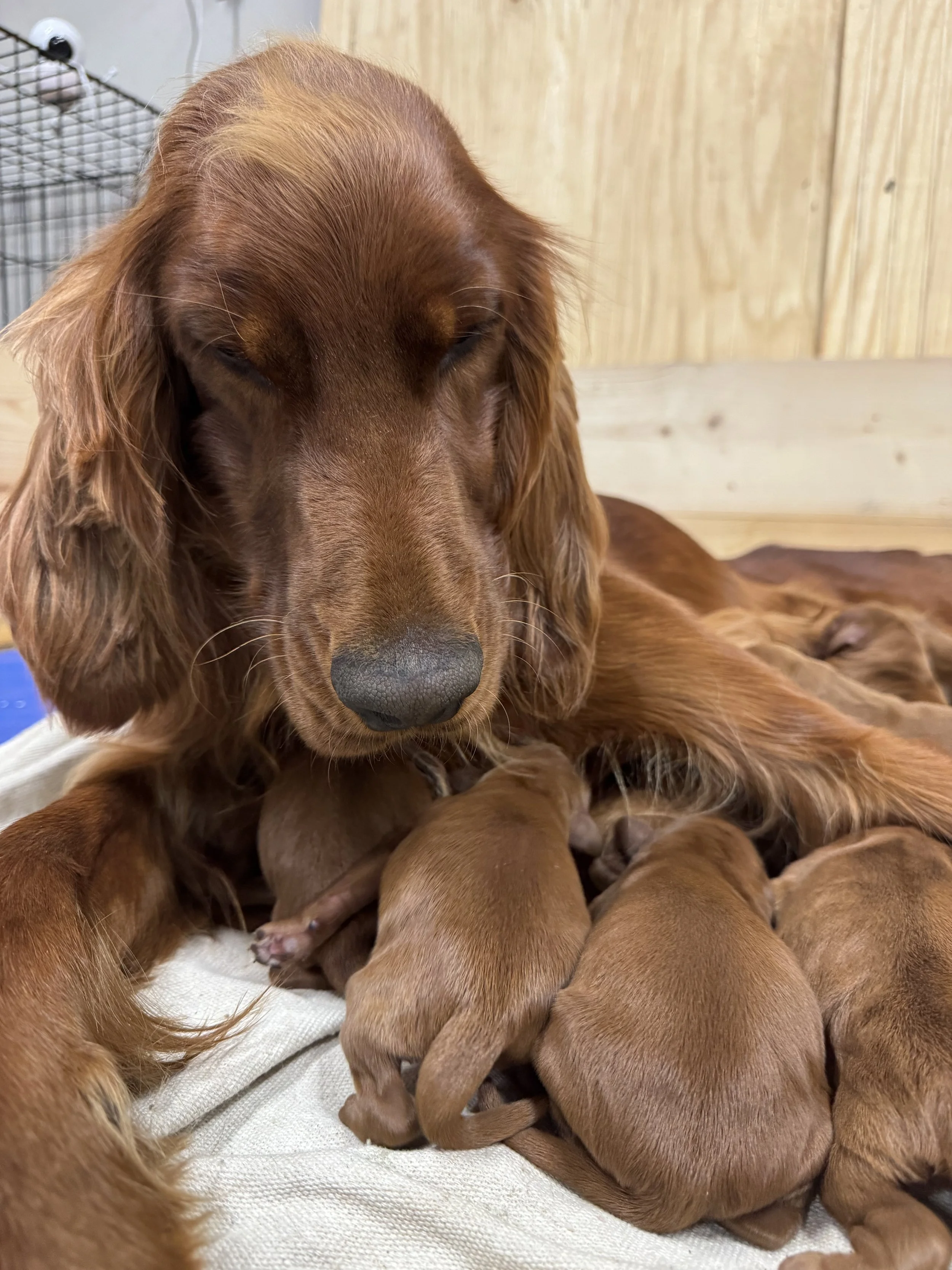 The Irish Setter has proven to be such a wonderful family dog. After our two Weimaraners passed in 2022, I knew it would be a matter of time before we chose a new pup for our family. I read and read about which breed would do best with children, other animals and farm life. Which breed would be loyal and safe. Sweet and endearing.